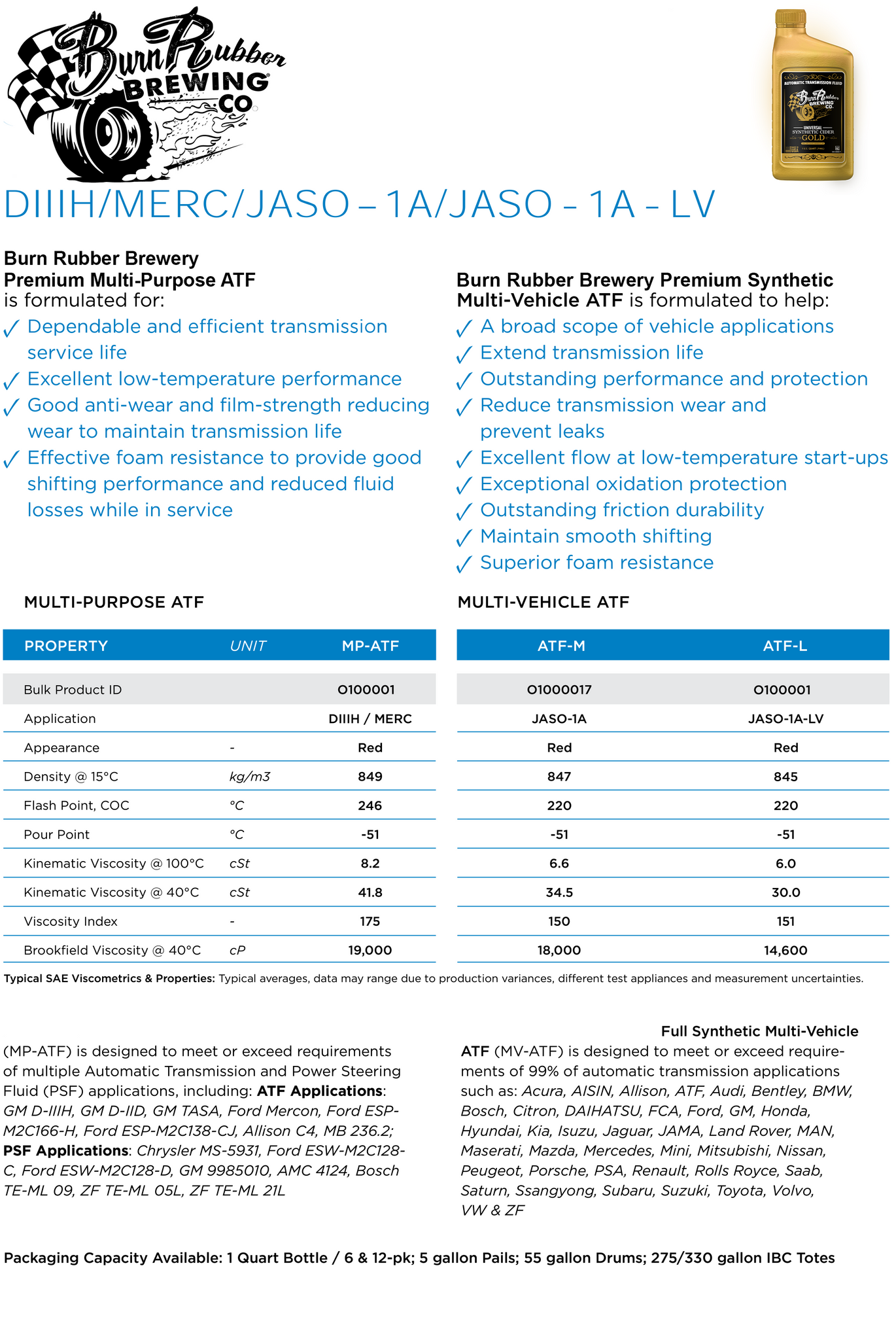 Burn Rubber Brewery – High-Performance Synthetic Automatic Transmission Fluid